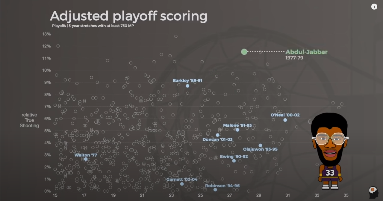 - There was no 3pt line for Kareem, so he wouldn't assume how well Kareem'd create an offense but he's going to put Kareem down for it.