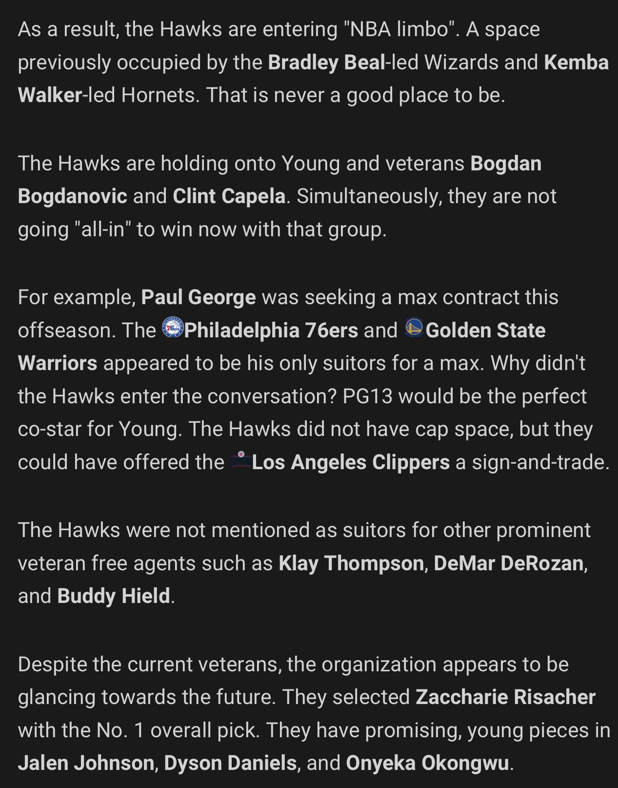 Jamaaliver wrote:Bleacher ReportStorylines Ahead of 2024 Hawks Training Camp