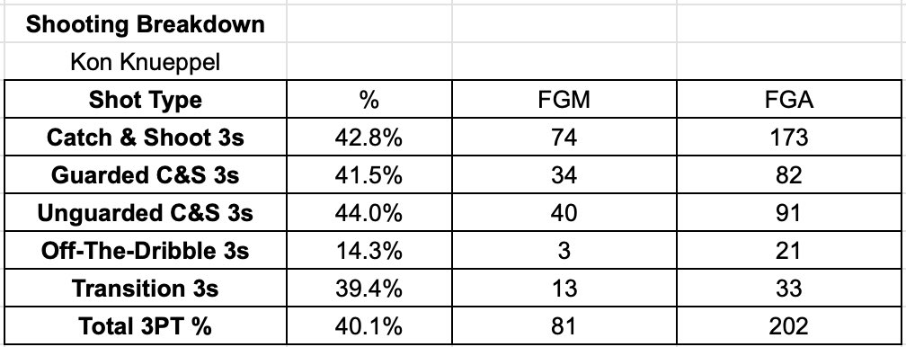 - Hasn’t shot efficiently from beyond the arc thus far despite positive future indicators, defenses will duck under ball screens