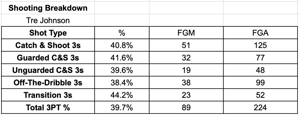 - Potential for shooting growth due to his 3-point volume, free-throw shooting and touch