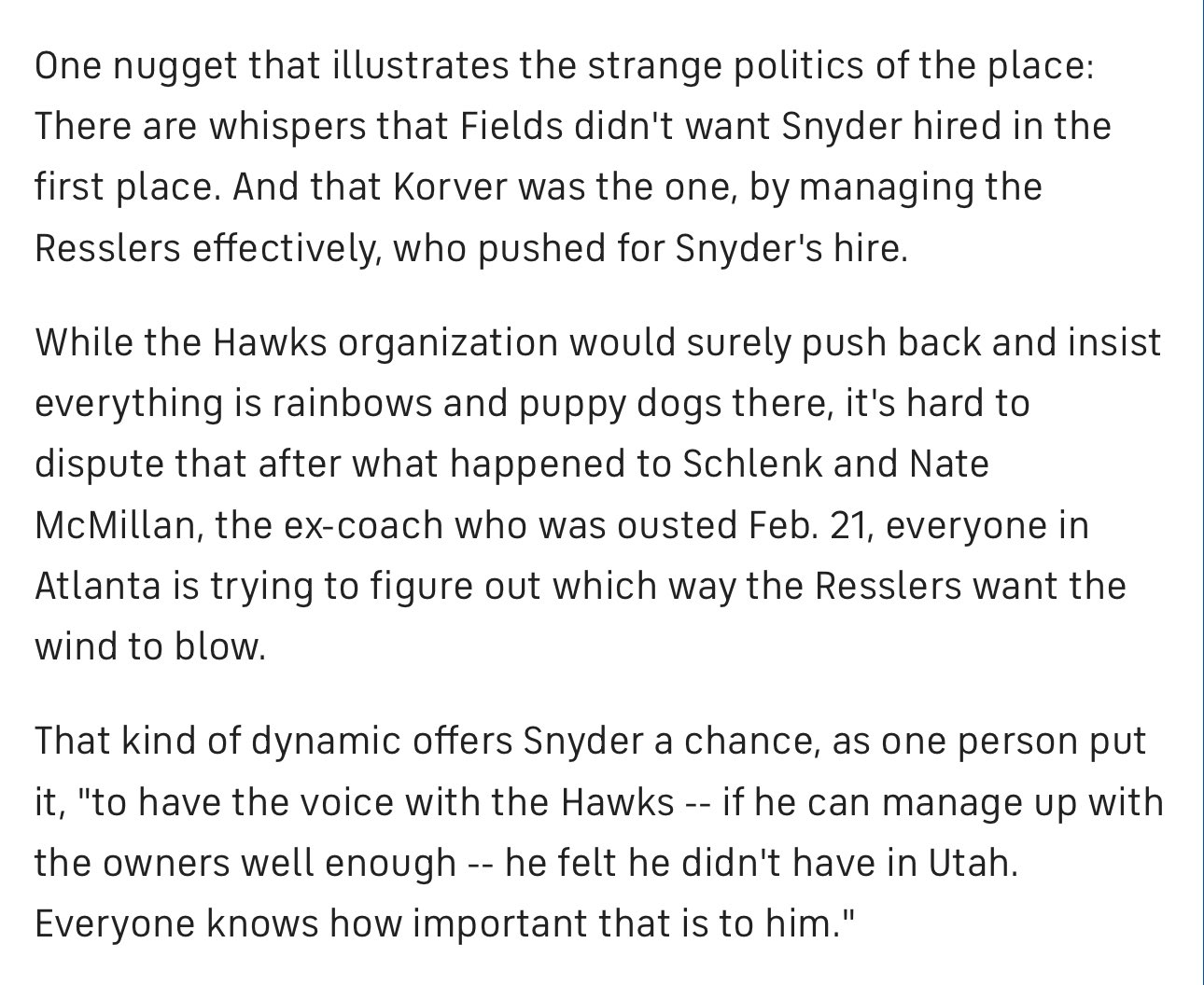 Kyle Korver named Asst GM(2 years after his first coaching gig) told me we were in for a loooonnngggg day. Landry at least was a scout and then later was the GM of a G league team before getting the bump. That said, seems like KK was the one who had enough sense to convince Ressler(s) of bringing in Snyder. Seems like Landry wanted no parts. Hell Landry probably wanted Billy Donovan or Vogel.