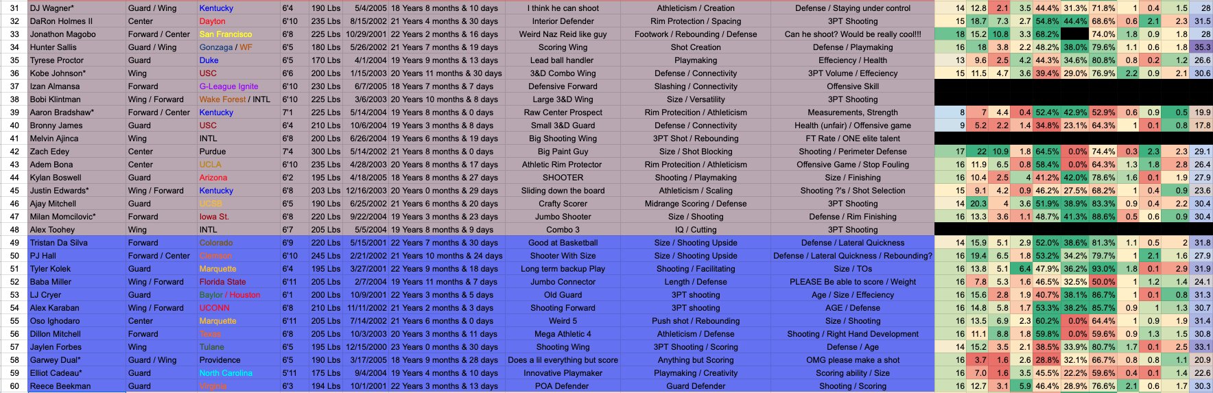 Given his role in just 20.9 minutes, scouts will have to put more stock into the flashes and the potential valuable archetype they could create for the 6'6", 215-pound point wing.