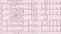 “Torsades de pointes is a specific form of polymorphic ventricular tachycardia in patients with a long QT interval (which may be DRUG-INDUCED or congenital). It is characterized by rapid, irregular QRS complexes, which appear to be twisting around the electrocardiogram (ECG) baseline.”